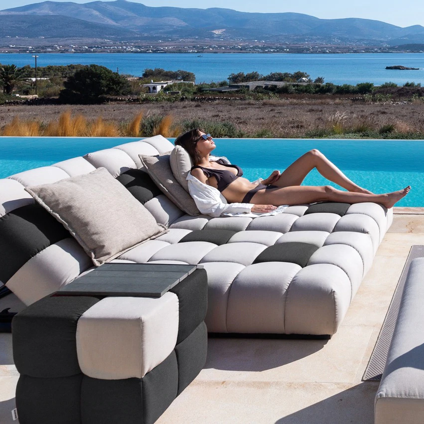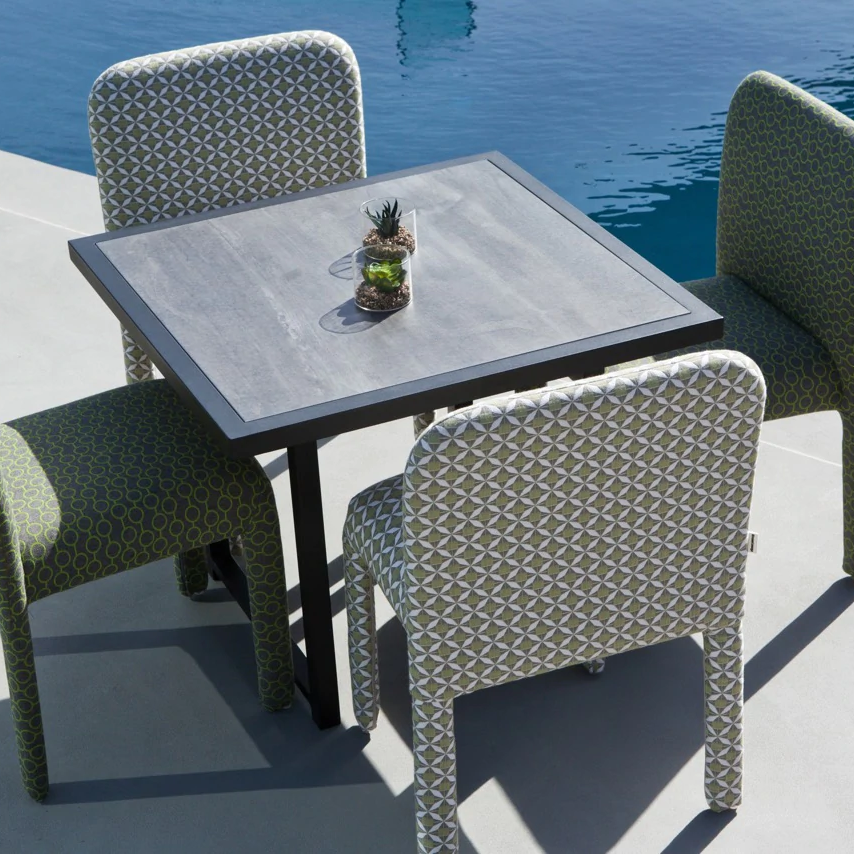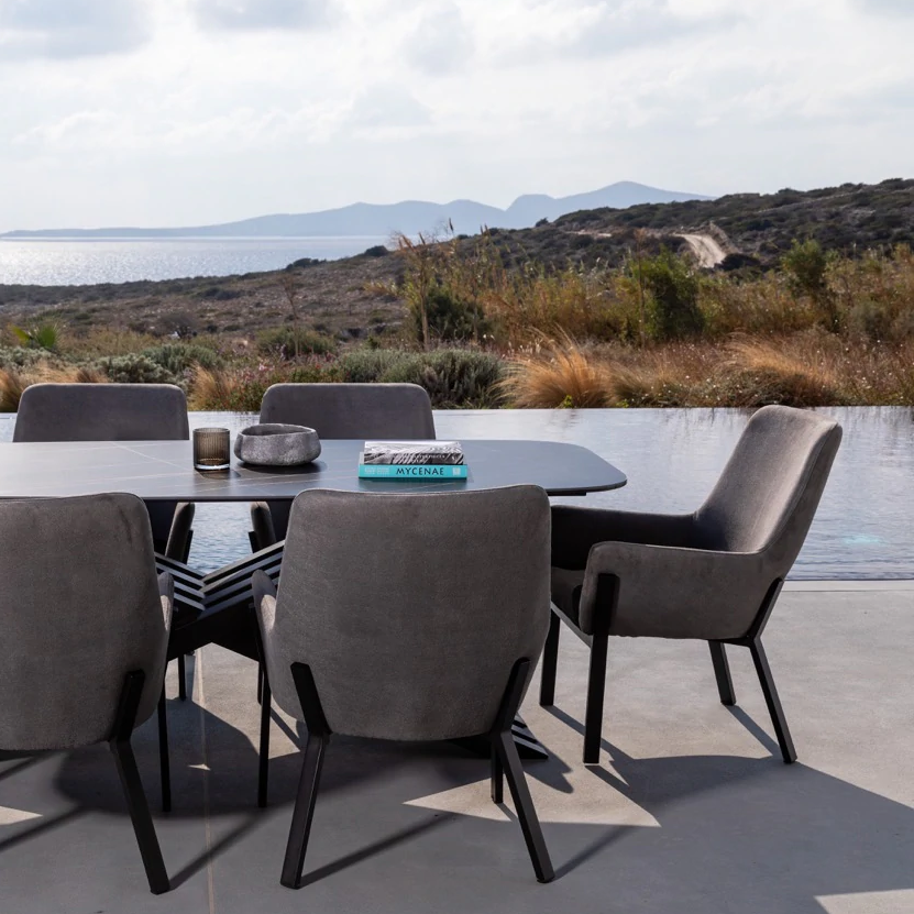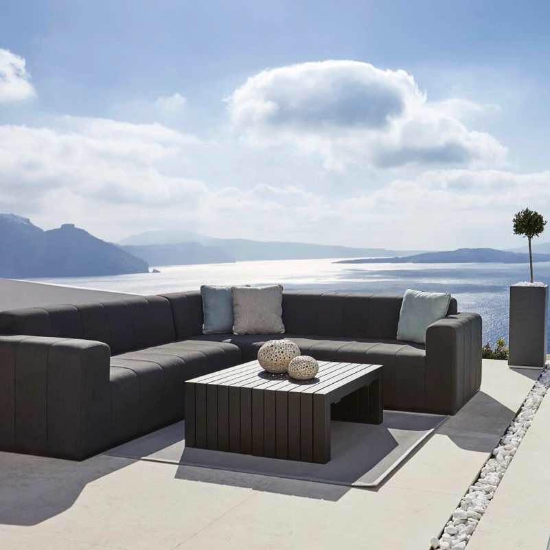 Our outdoor furniture is upholstered with fabric or leather that is suitable for outdoor use throughout the whole year.